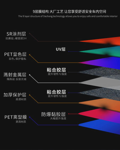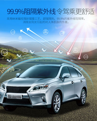 我们采用了现代技术磁控溅射和纳米光学工艺,替代了传统窗膜。我们利用专有技术、工艺、涂料,生产出高质量高性能的窗膜,达到最离的光学精密水平。这使本品汽车膜具有高清晰度,无失真,并且能有效降低能 源成本,提高隐私,保证安全,减少热量和眩光,以及减少红外线穿透。